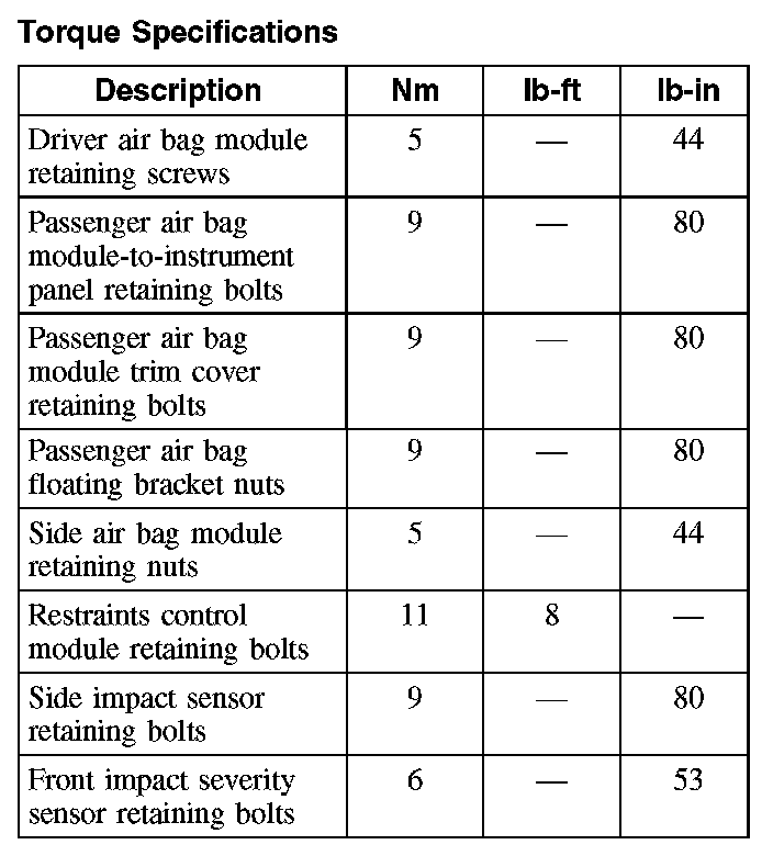 Air Bag Systems: Specifications