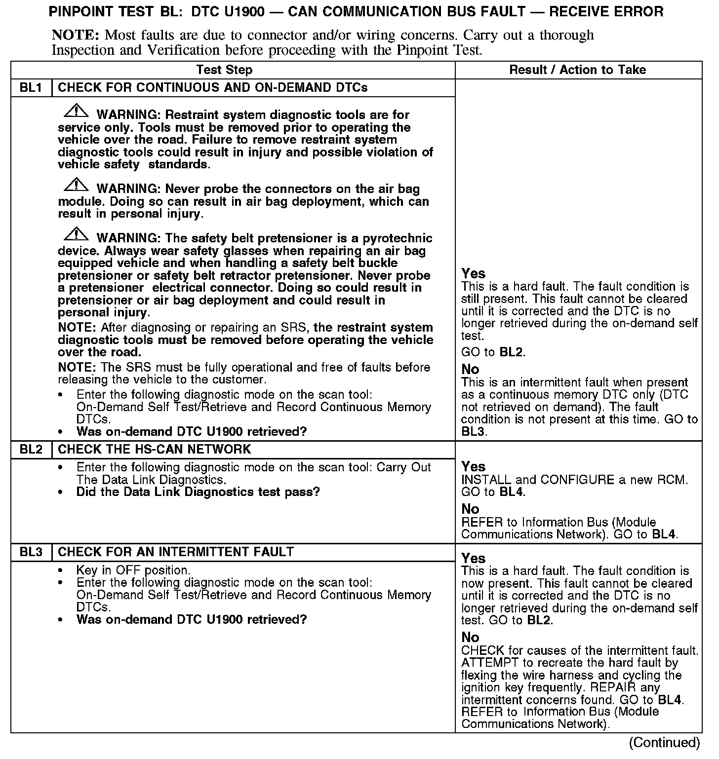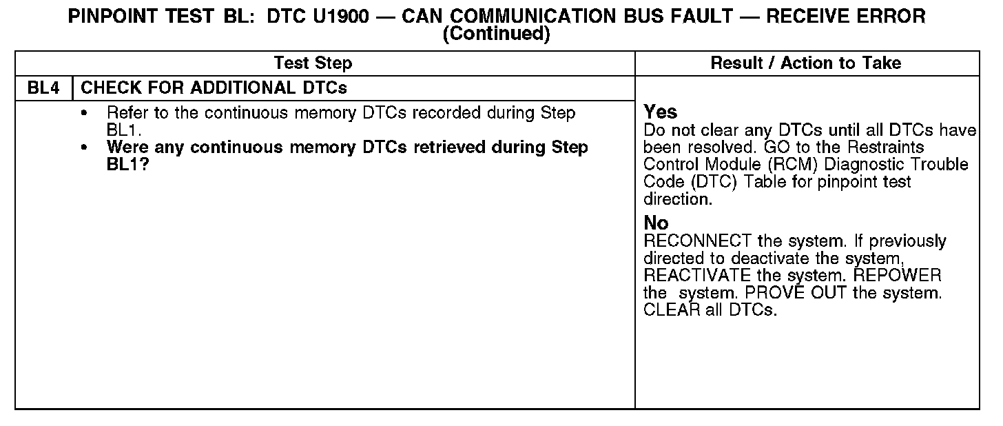 PINPOINT TEST BL: DTC U1900 - CAN COMMUNICATION BUS FAULT - RECEIVE ERRORBL1-BL3: