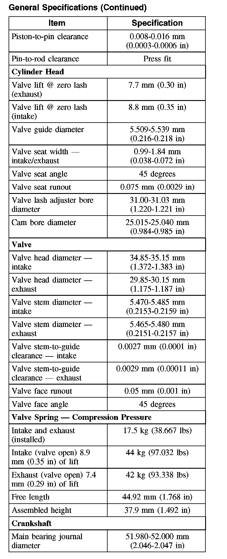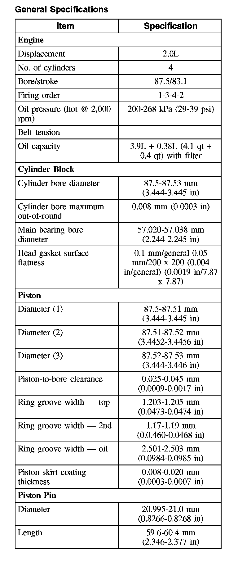 General Specifications