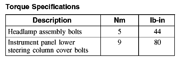 Torque Specifications: