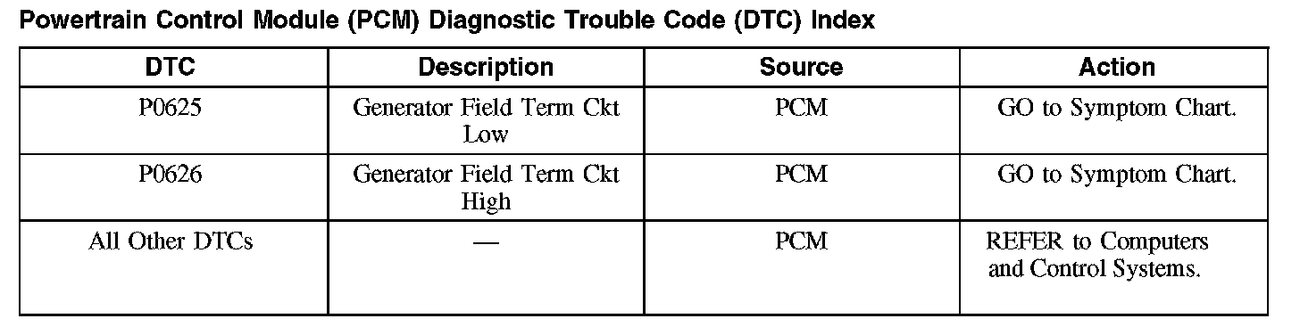 Powertrain Control Module (PCM) Diagnostic Trouble Code (DTC) Index