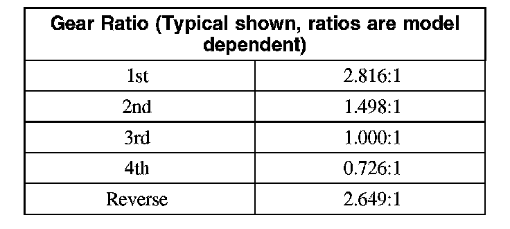 Gear Ratio (Typical Shown, Ratios Are Model Dependent):