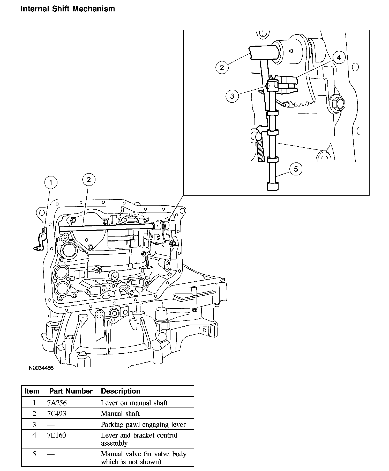 In the transmission, the manual shaft operates the parking pawl engaging lever and the actuating lever of the manual valve.