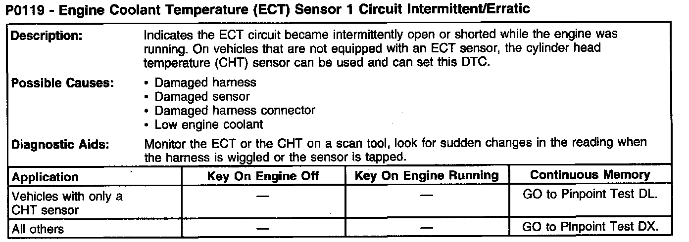 P0119 - Engine Coolant Temperature (ECT) Sensor 1 Circuit Intermittent/Erratic: