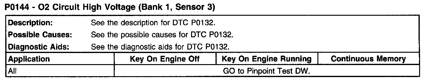 P0144 - O2 Circuit High Voltage (Bank 1, Sensor 3):