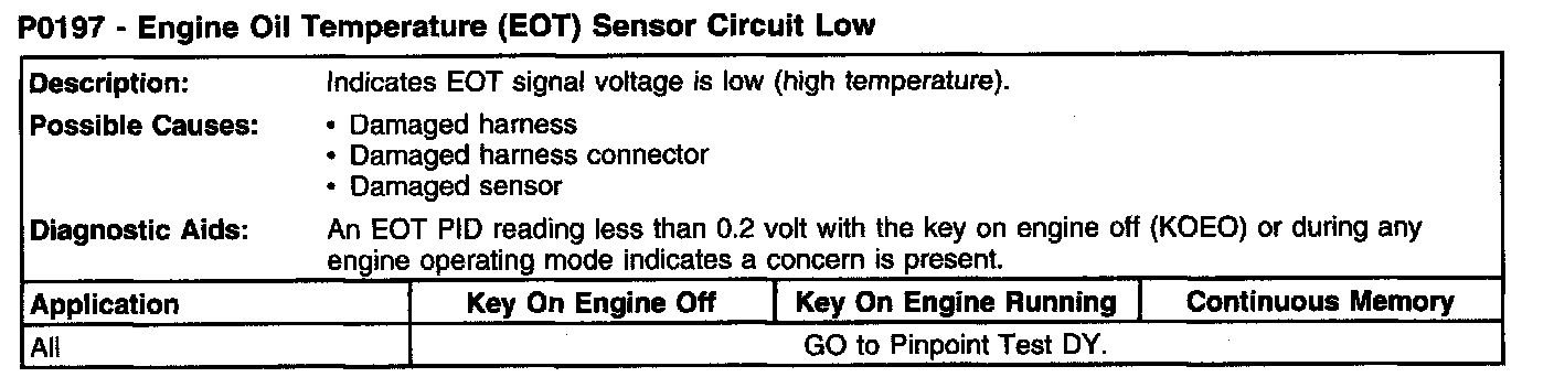 P0197 - Engine Oil Temperature (EOT) Sensor Circuit Low: