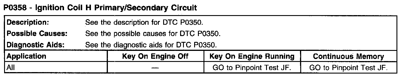 P0358 - Ignition Coil H Primary/Secondary Circuit:
