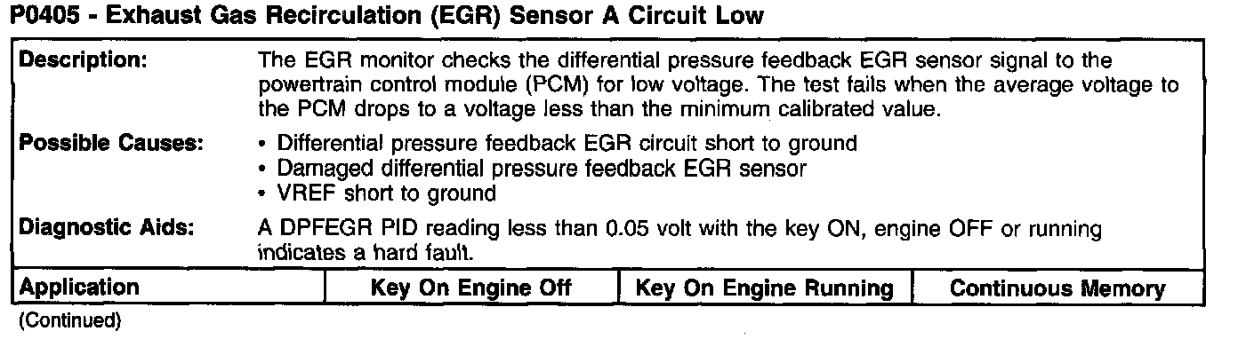 P0405 - Exhaust Gas Recirculation (EGR) Sensor A Circuit Low (Part 2):