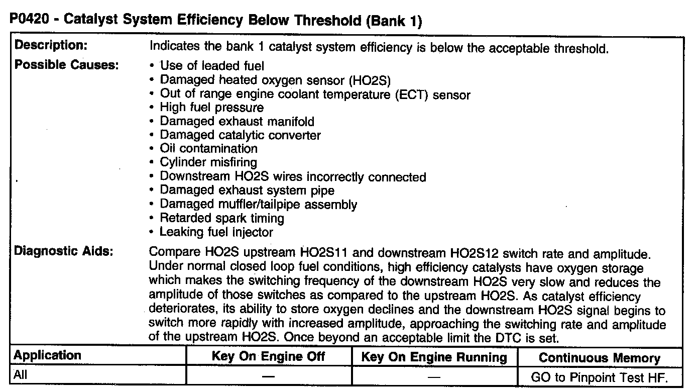 P0420 - Catalyst System Efficiency Below Threshold (Bank 1):