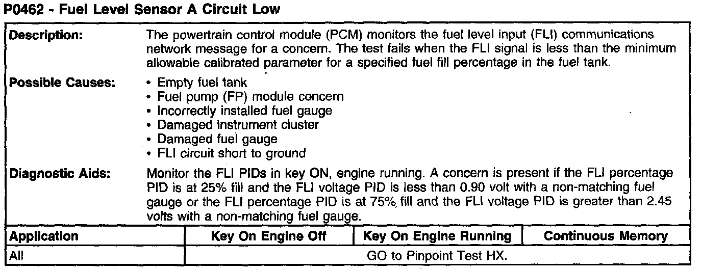 P0462 - Fuel Level Sensor A Circuit Low: