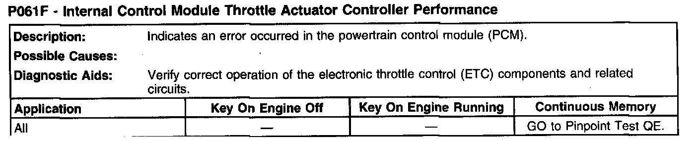 P061F - Internal Control Module Throttle Actuator Controller Performance: