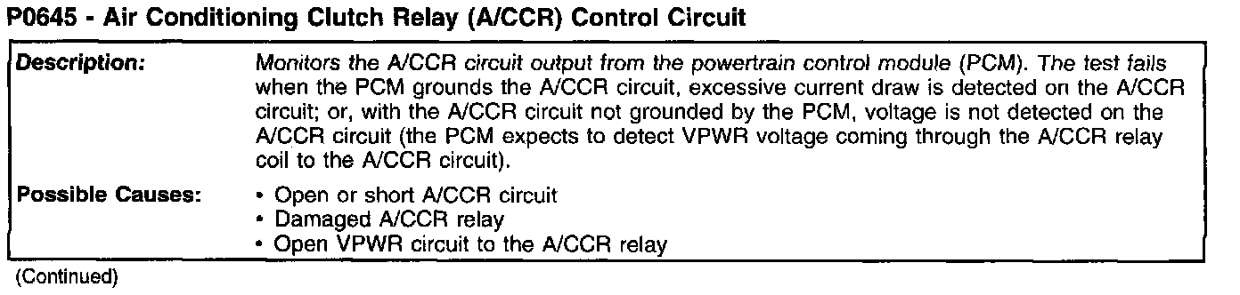 P0645 - Air Conditioning Clutch Relay (A/CCR) Control Circuit (Part 2):