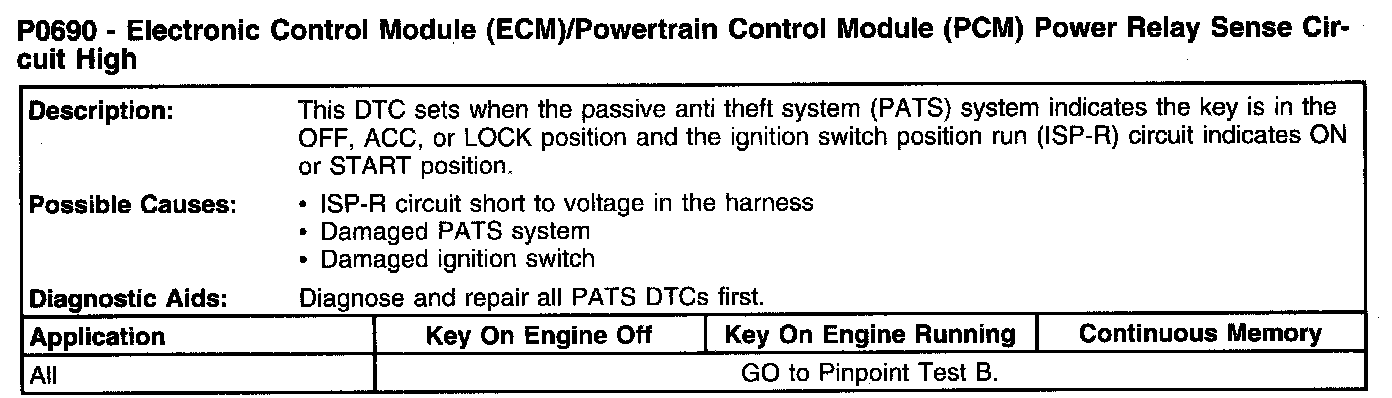 P0690 - Electronic Control Module (ECM)/Powertrain Control Module (PCM) Power Relay Sense Circuit High: