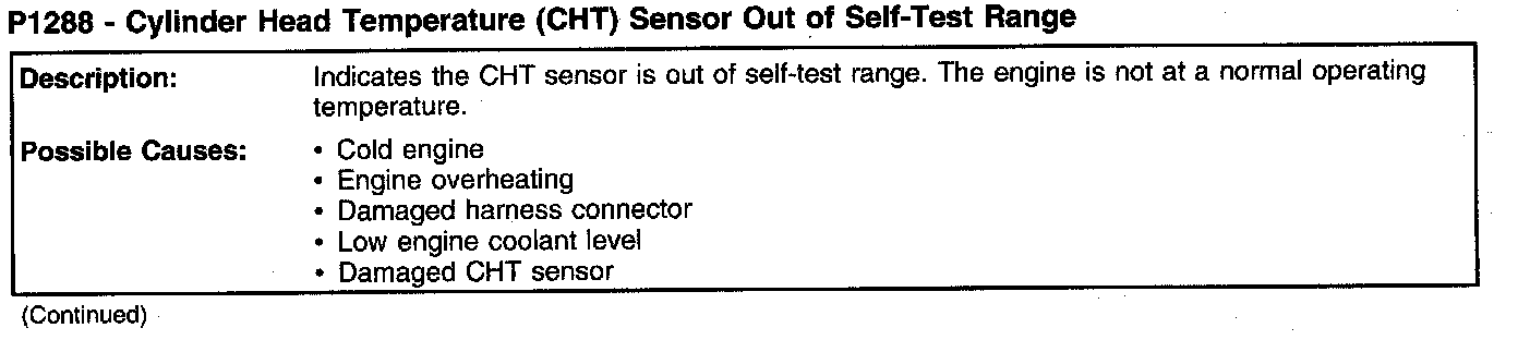 P1288 - Cylinder Head Temperature (CHT) Sensor Out Of Self-Test Range (Part 1):