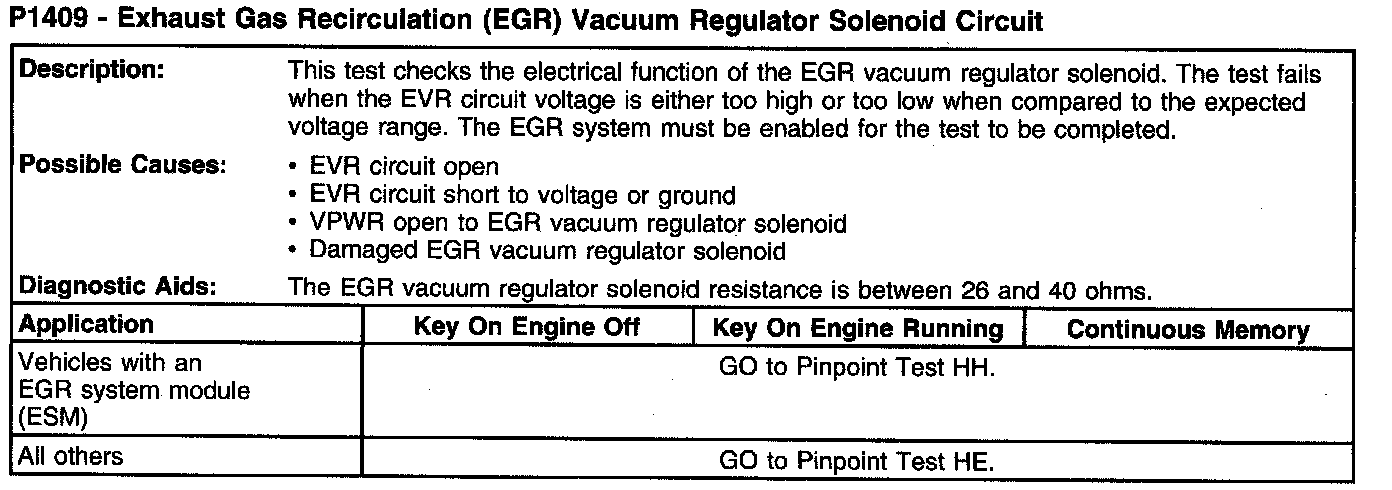P1409 - Exhaust Gas Recirculation (EGR) Vacuum Regulator Solenoid Circuit: