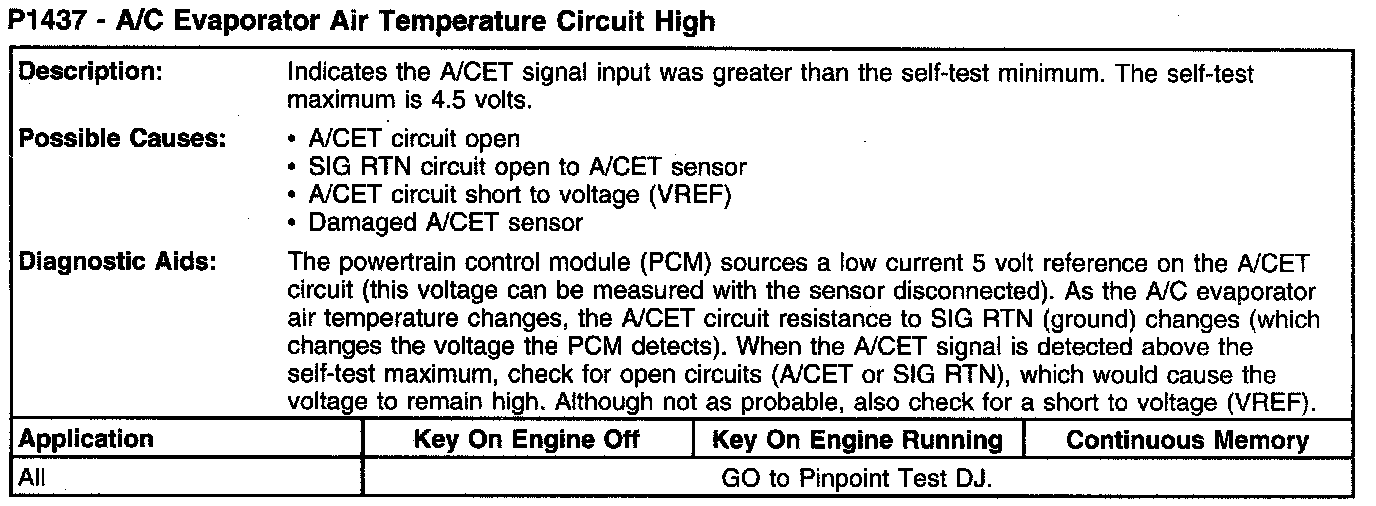 P1437 - A/C Evaporator Air Temperature Circuit High: