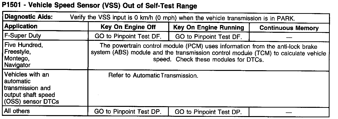 P1501 - Vehicle Speed Sensor (VSS) Out Of Self-Test Range (Part 2):
