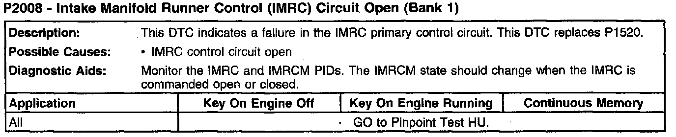 P2008 - Intake Manifold Runner Control (IMRC) Circuit Open (Bank 1):
