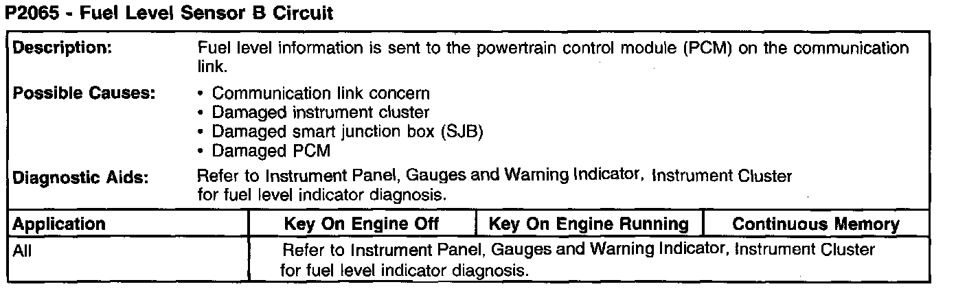 P2065 - Fuel Level Sensor B Circuit: