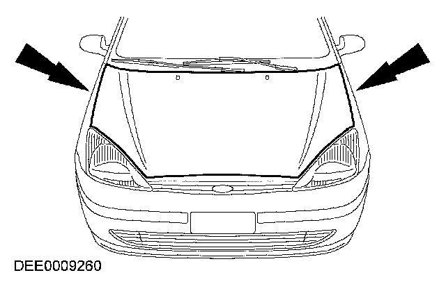 - The hood latch must be installed so that the hood engages without stress and the clearances on the left-hand and right-hand sides are not changed.