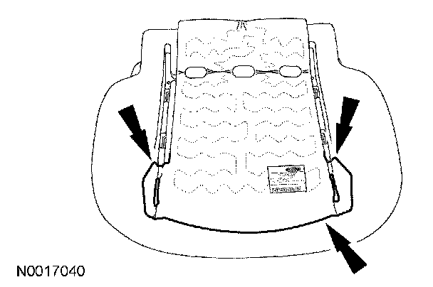 8. CAUTION: Inspect the components for any foreign objects before installing the seat cushion trim cover. If any foreign objects are found, remove them. Failure to do so may result in personal injury, in the event of an air bag deployment.