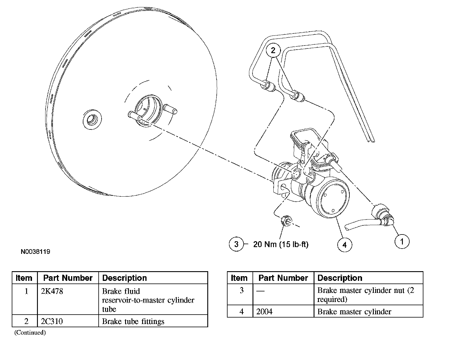 12. CAUTION: Cap the brake tube connections to prevent fluid loss or dirt contamination.