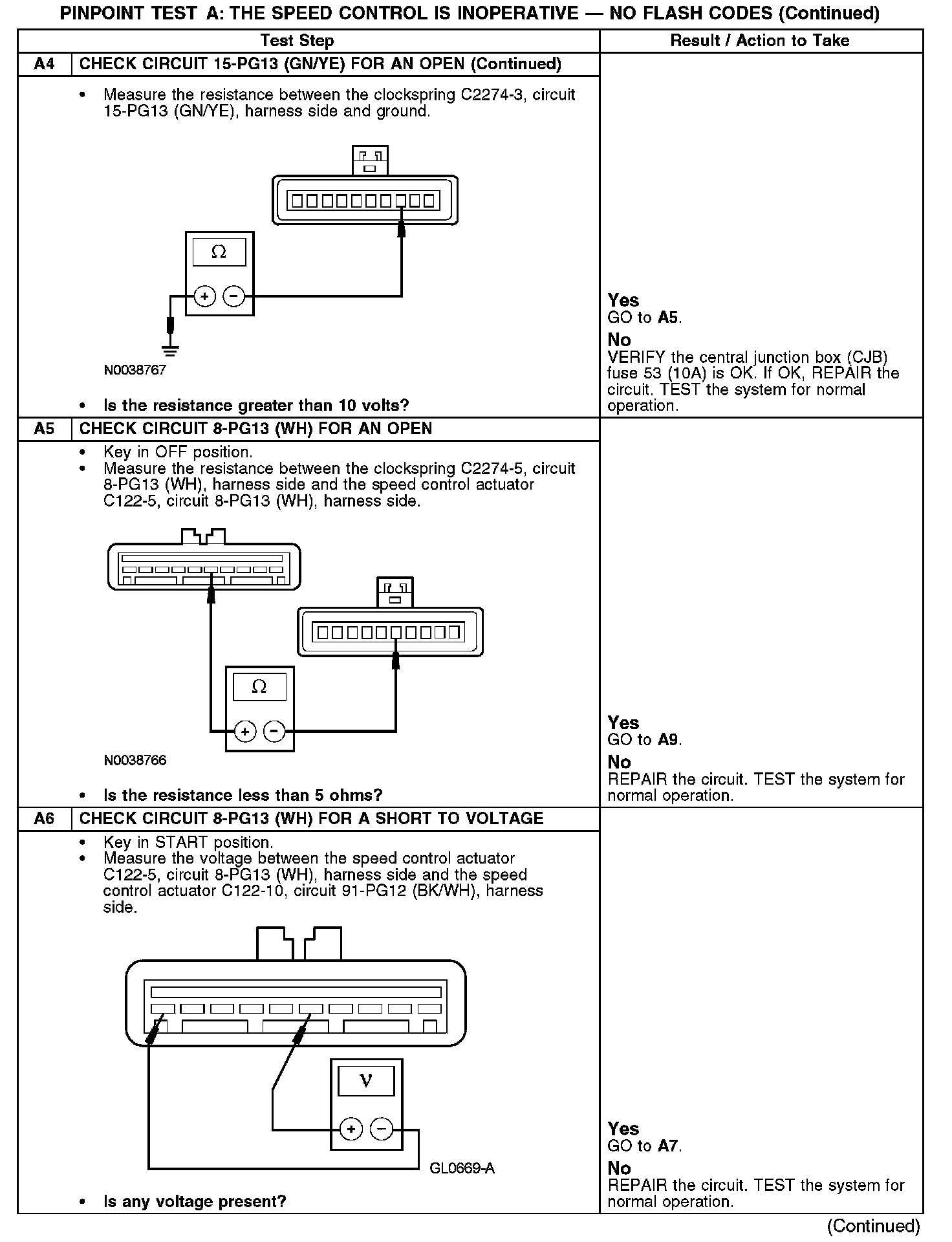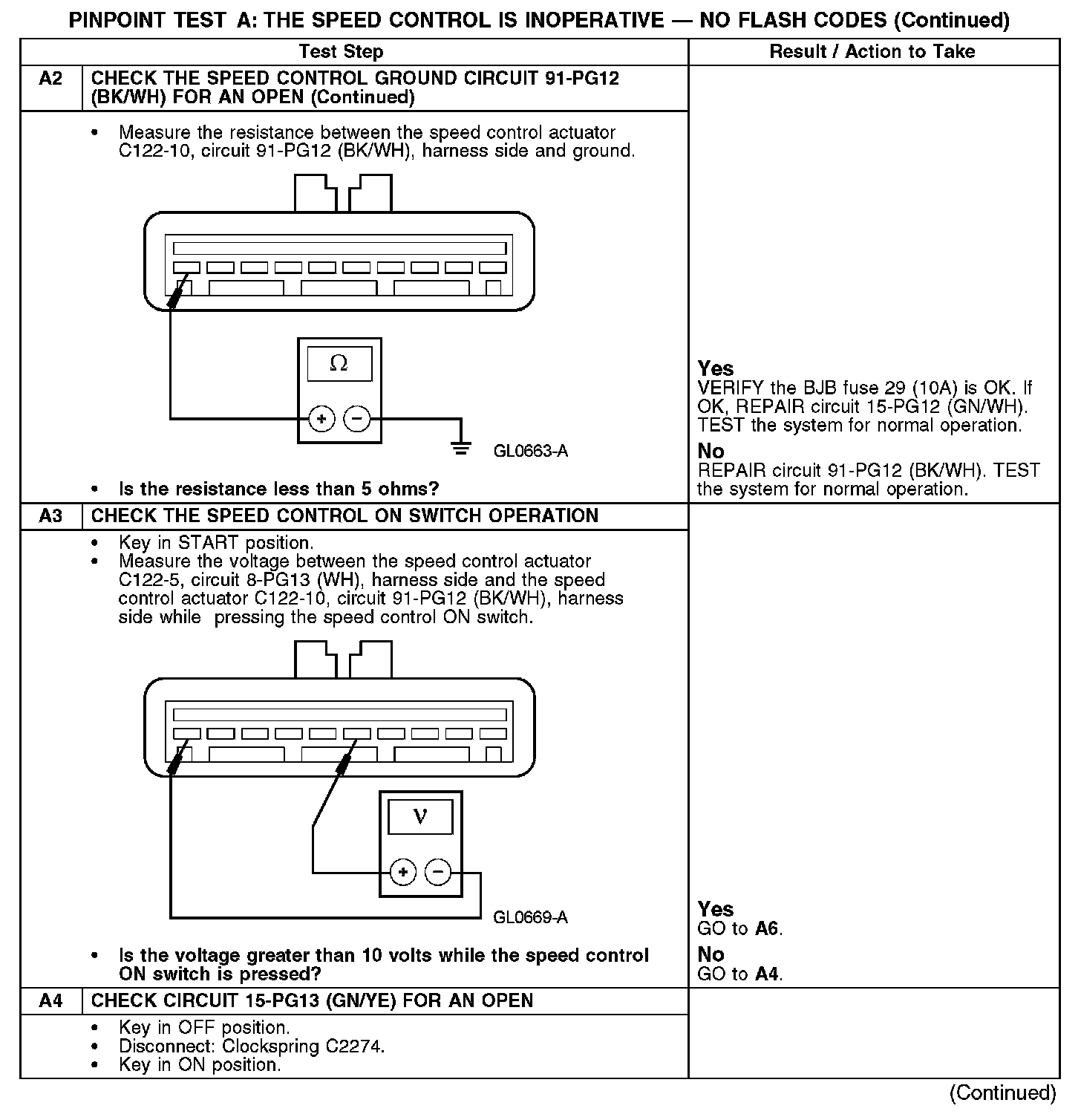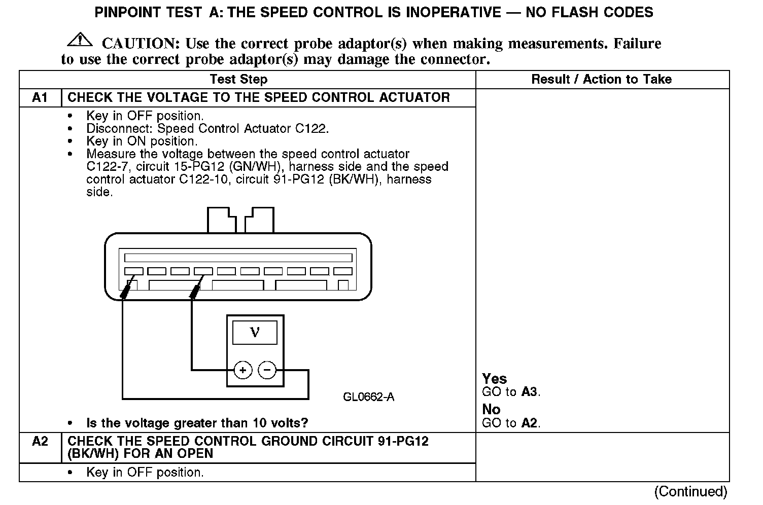 PINPOINT TEST A: THE SPEED CONTROL IS INOPERATIVE - NO FLASH CODESA1-A2: