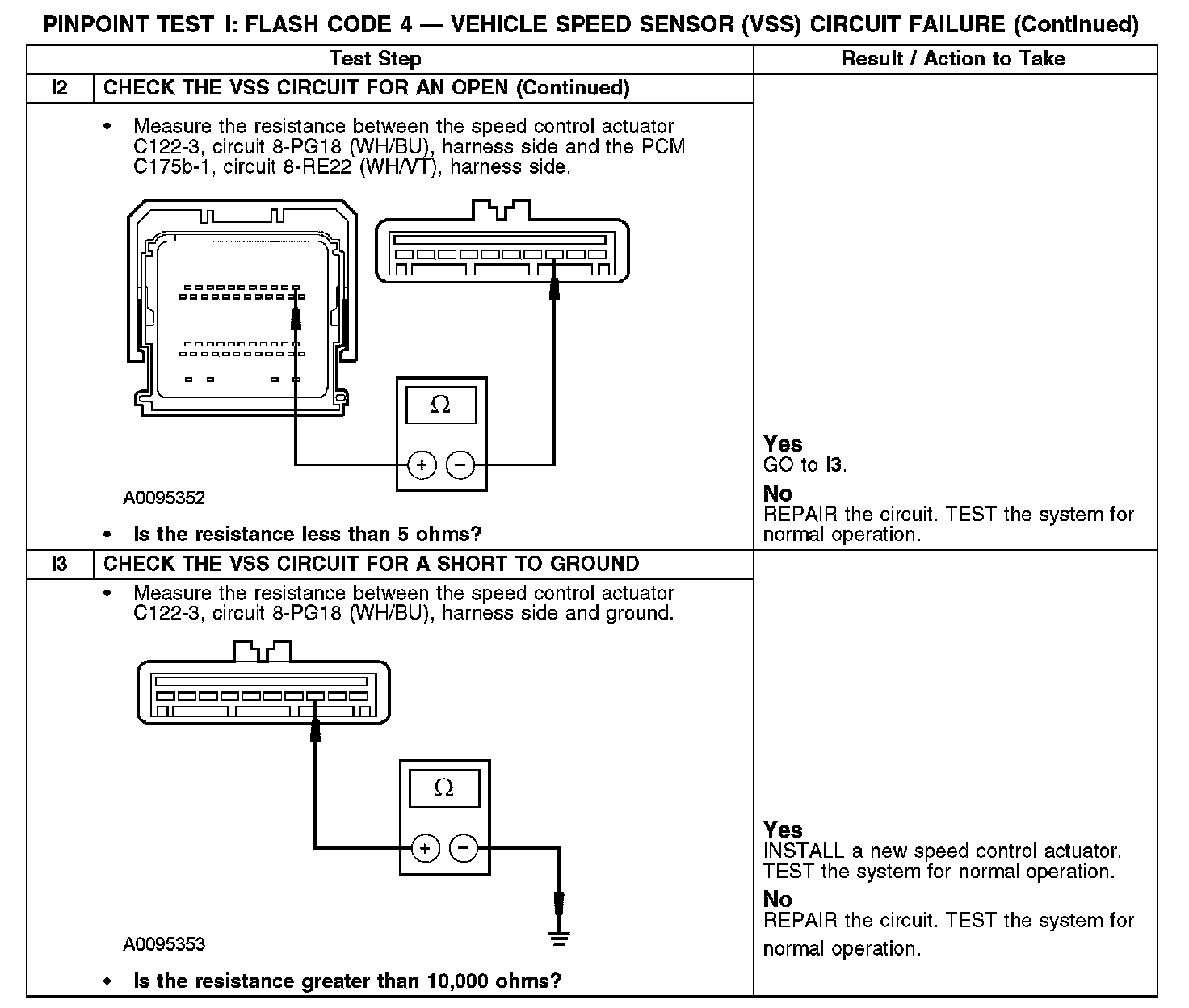 PINPOINT TEST I: FLASH CODE 4 - VEHICLE SPEED SENSOR (VSS) CIRCUIT FAILUREI1-I2: