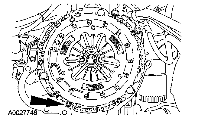 139. NOTE: If reusing the clutch pressure plate and flywheel, align the marks made during removal.