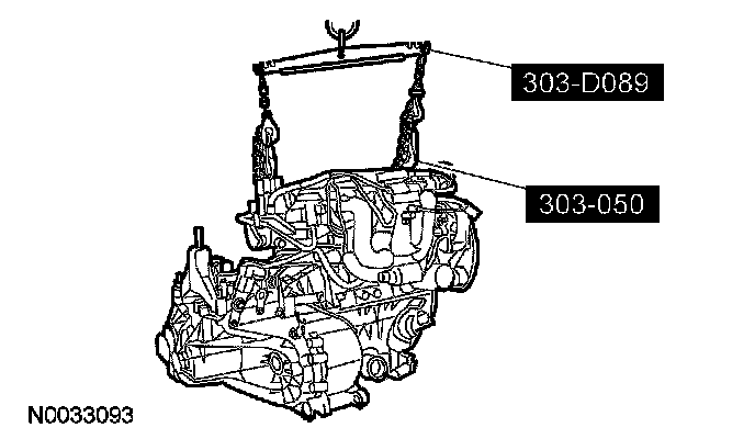 4. Using the special tools, raise the engine and transaxle assembly onto the lift table.