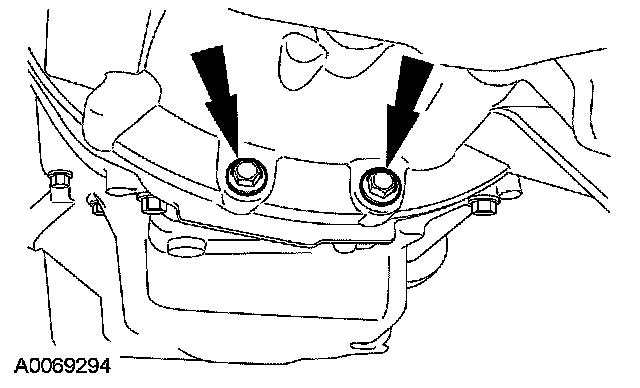 15. Install the 2 lower bellhousing-to-oil pan bolts.