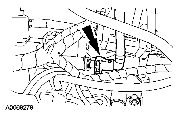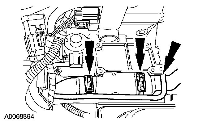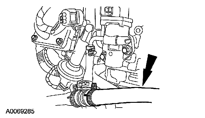 55. Connect the upper radiator hose, the heater hose and the coolant vent hose to the coolant bypass.