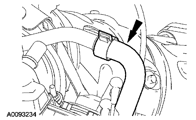 26. Disconnect the upper radiator hose, the heater hose and the coolant vent hose from the coolant bypass.