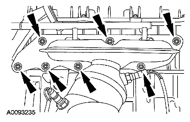 15. Remove and discard the 7 catalytic converter-to-engine nuts.