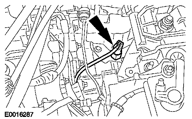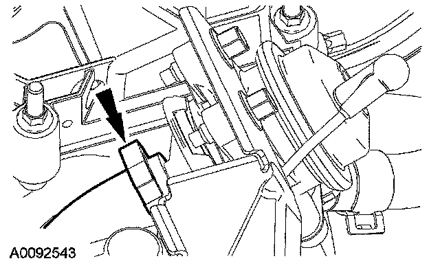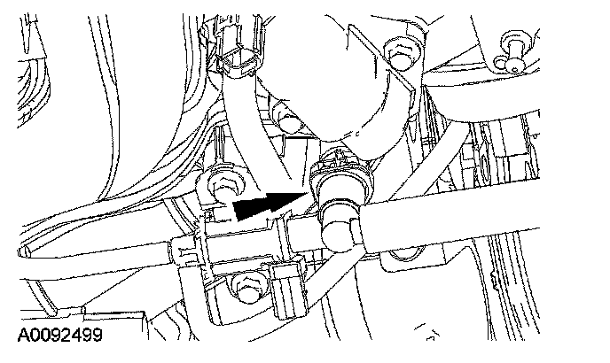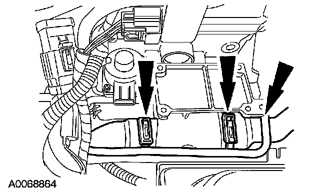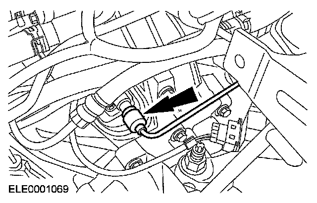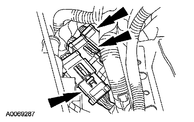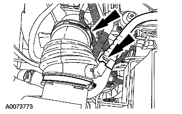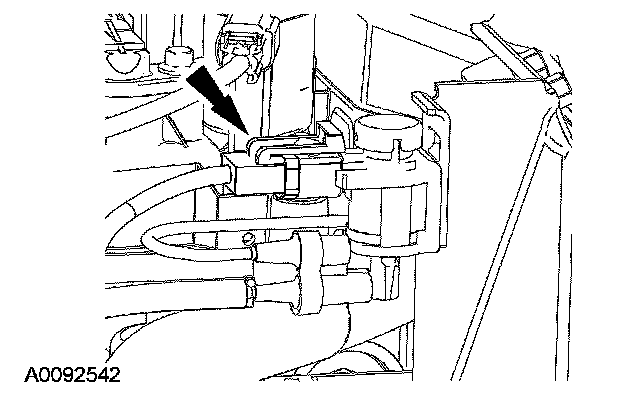 ^ Detach the evaporative emissions (EVAP) hose pin-type retainer.