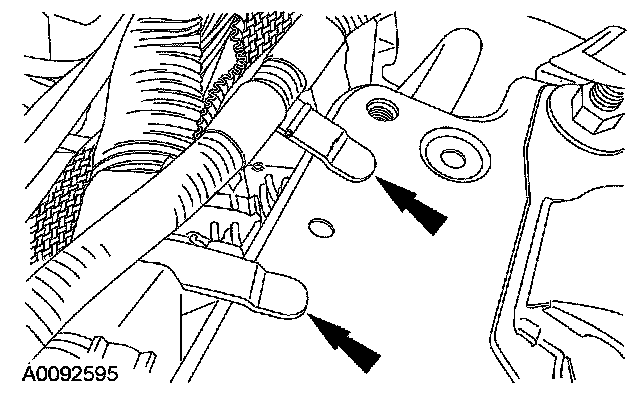 2 Detach the selector cable from the retaining bracket, turning the abutment sleeves counterclockwise.