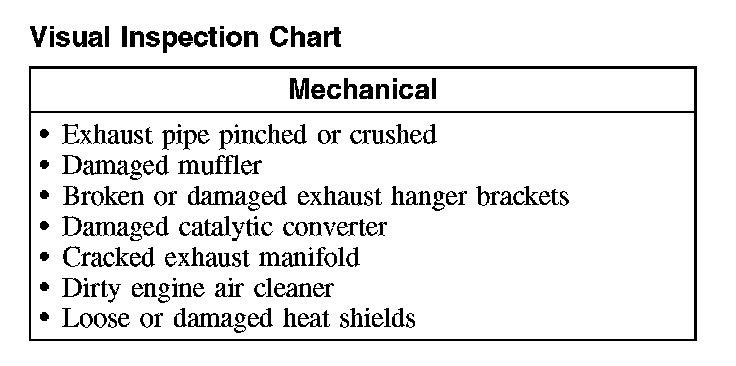 2. Visually inspect the components of the exhaust system and related controls that may affect exhaust gas quality or loss of power.