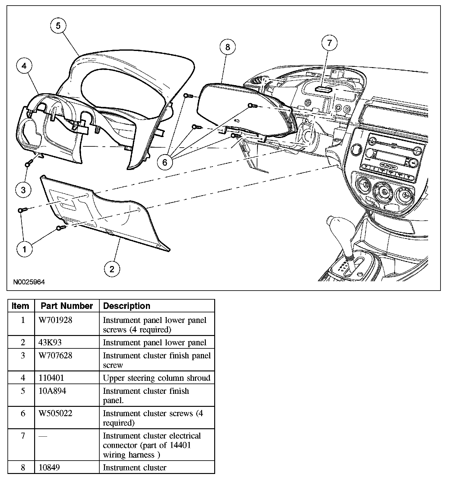 3. Remove the instrument cluster finish panel.
