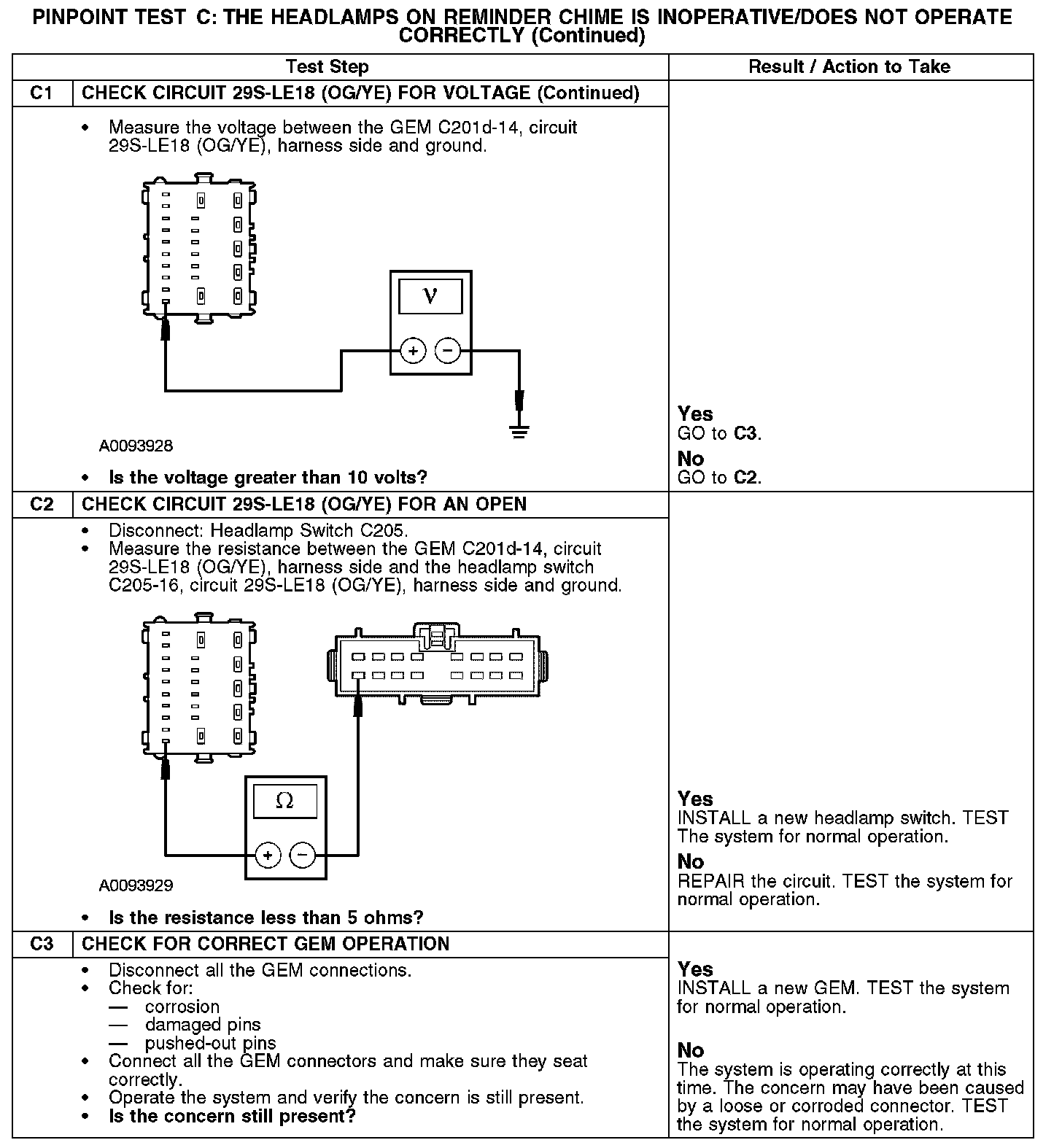Test C: The Headlamps On Reminder Chime Is Inoperative/Does Not Operate Correctly