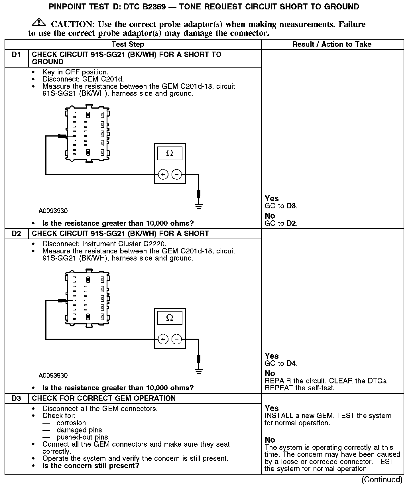 PINPOINT TEST D: DTC B2369 - TONE REQUEST CIRCUIT SHORT TO GROUNDD1-D3: