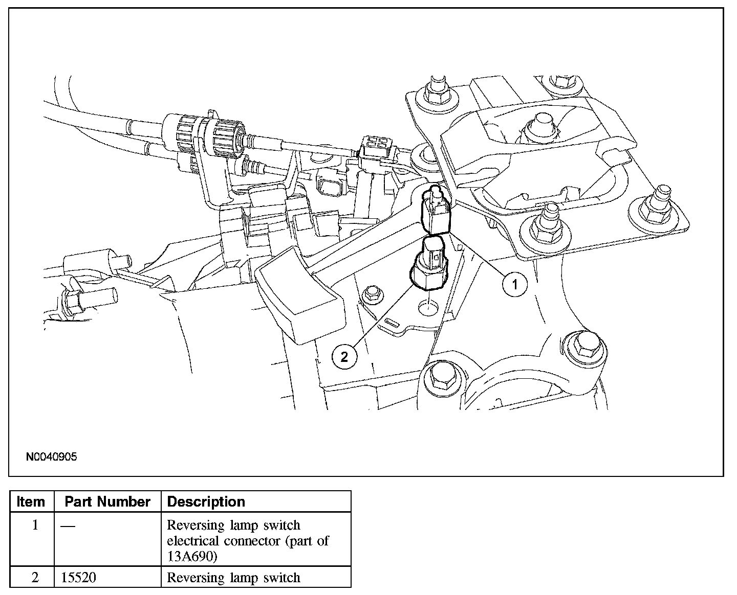 Disconnect the electrical connector and remove the reversing lamp switch.