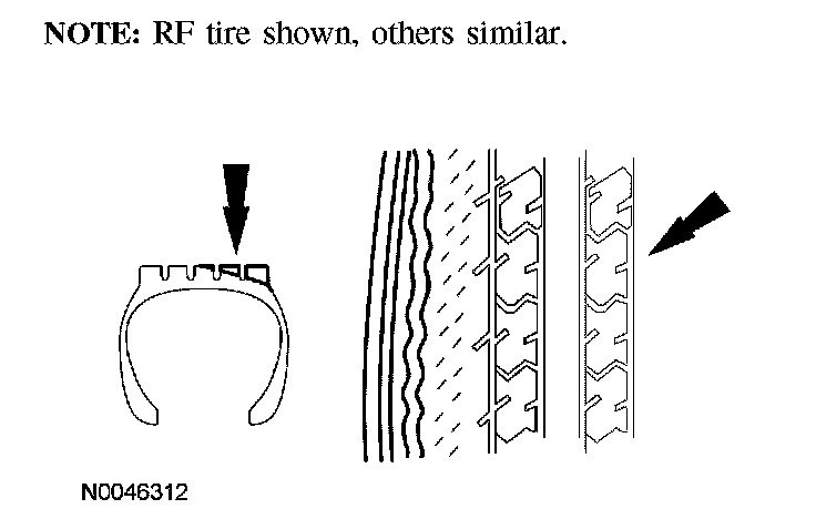 3. Tread wear indicators are molded into the bottom of the tread grooves. Install a new tire when the indicator bands become visible.