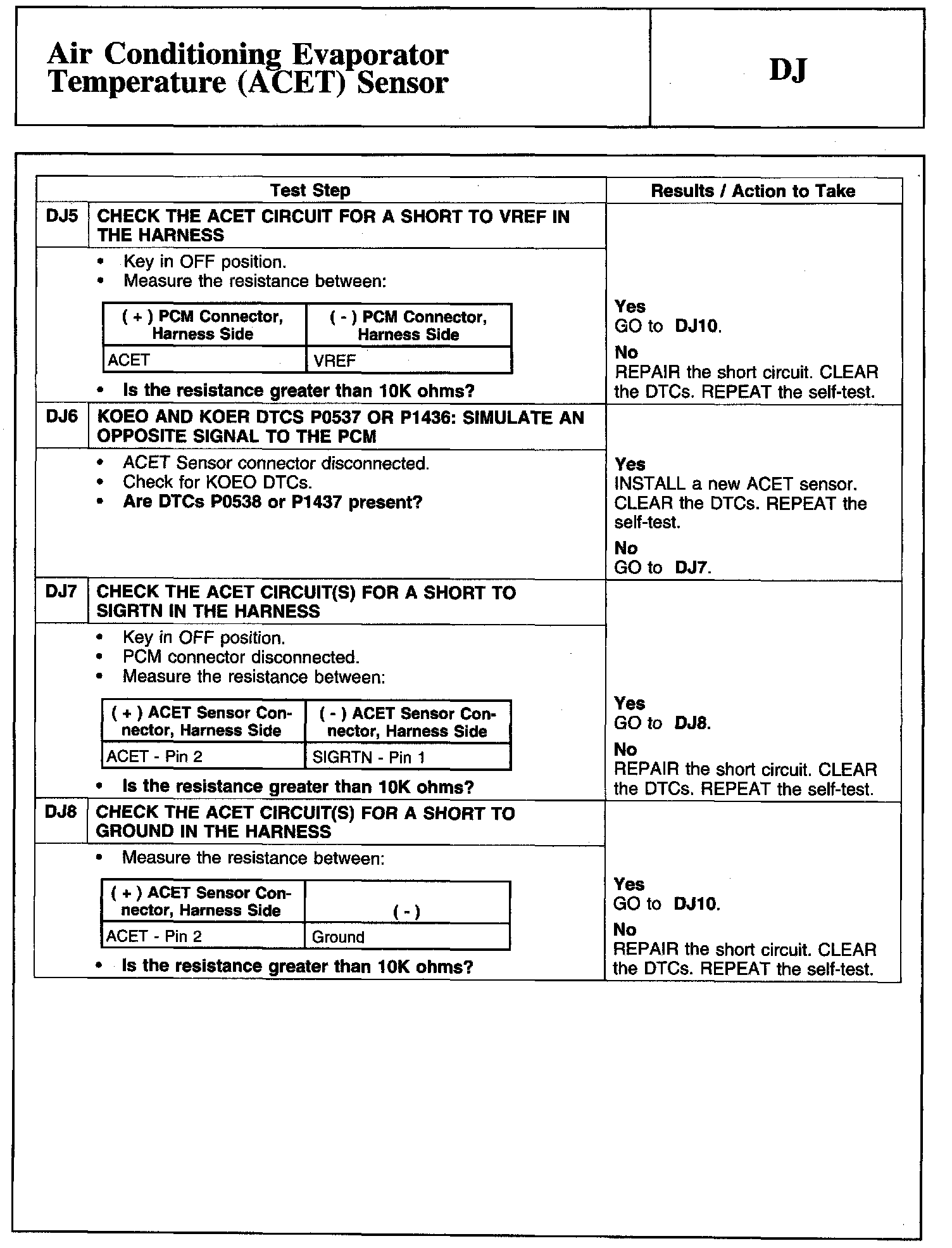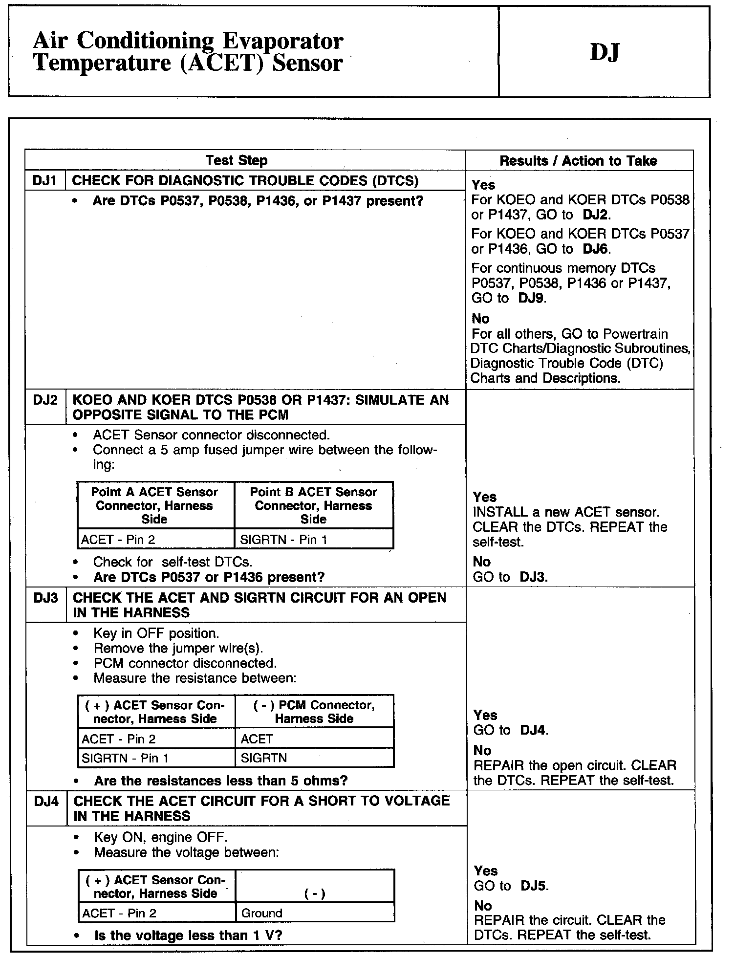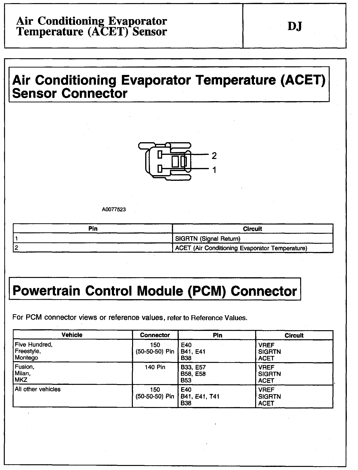 PINPOINT TEST DJ: AIR CONDITIONER EVAPORATOR TEMPERATURE (ACET) SENSORAir Conditioning Evaporator Temperature (ACET) Sensor: