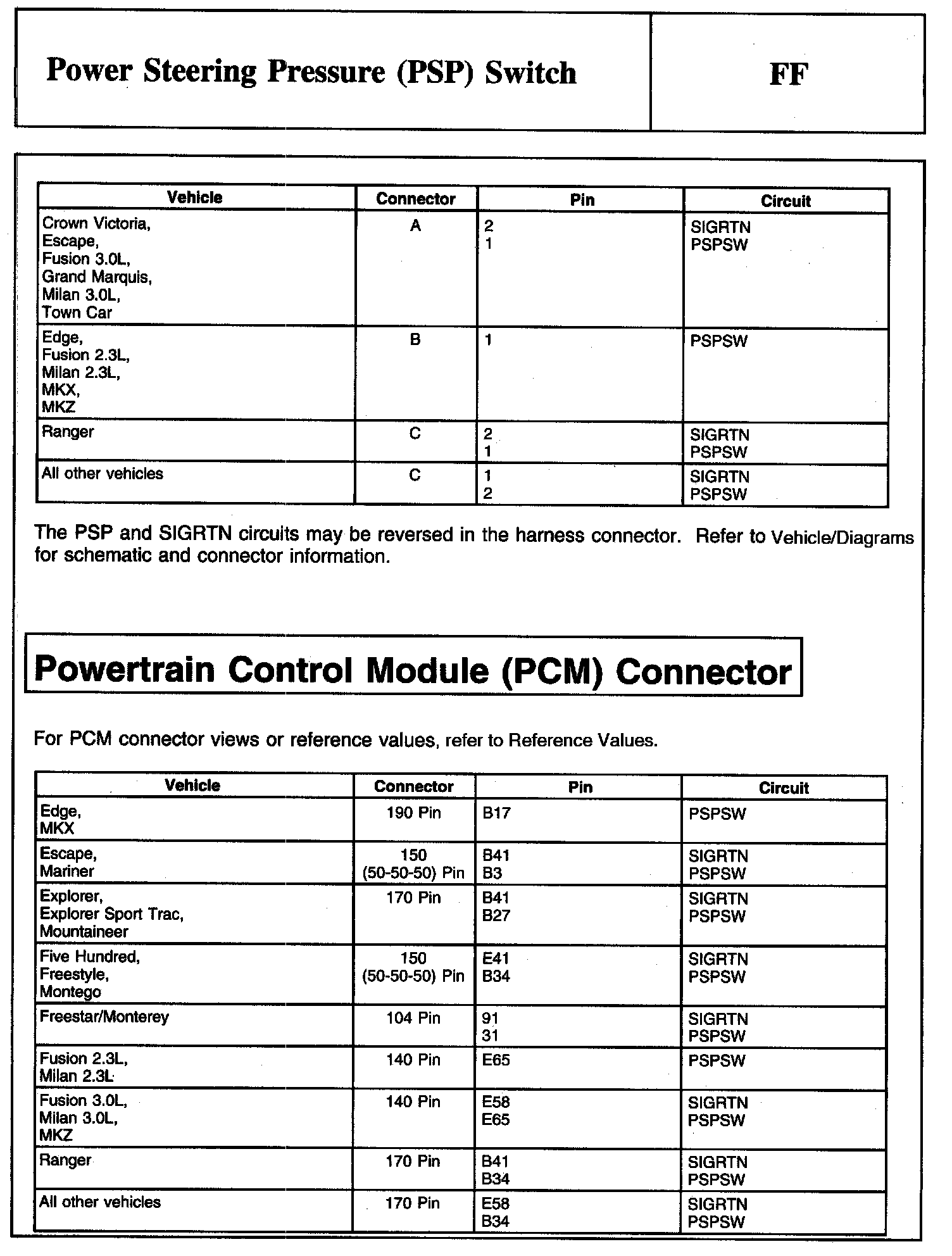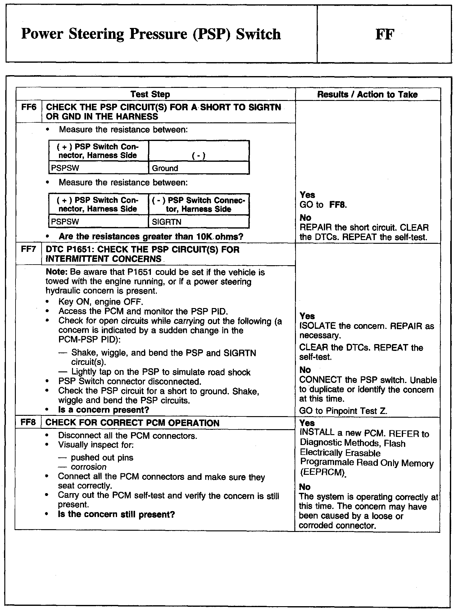 Tests FF: Power Steering Pressure (PSP) Switch