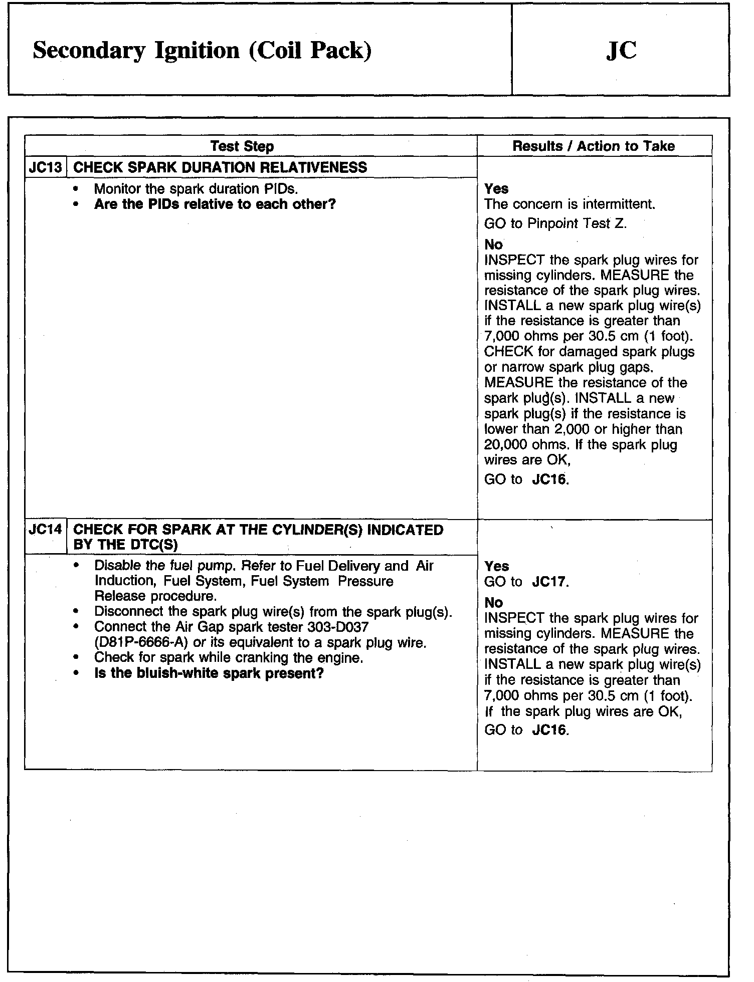 PINPOINT TEST JC: SECONDARY IGNITION (COIL PACK)