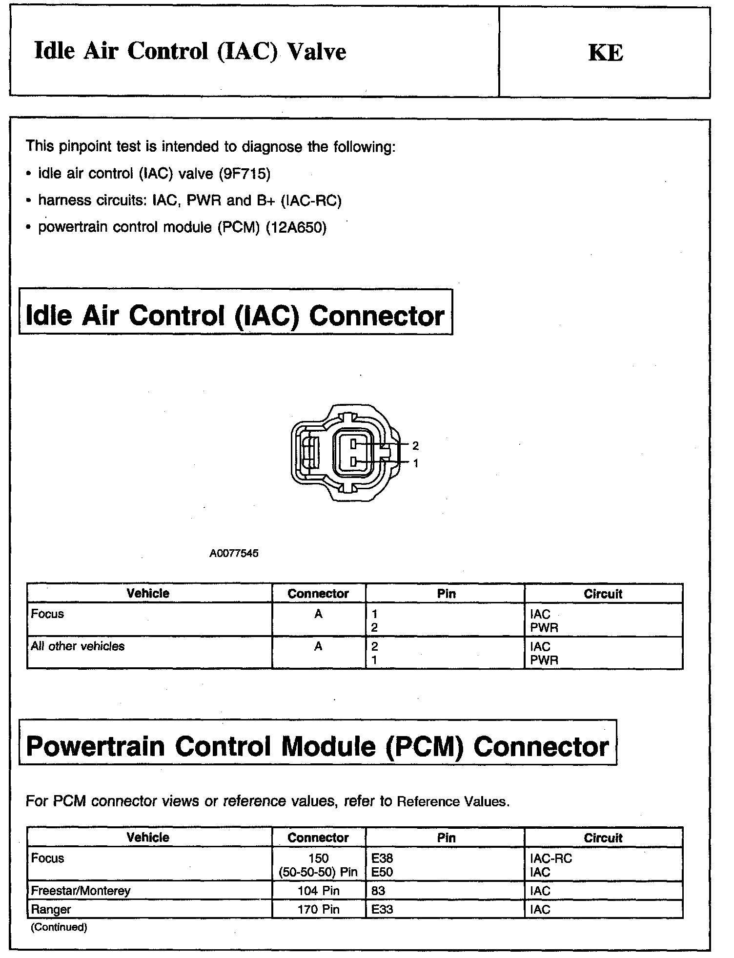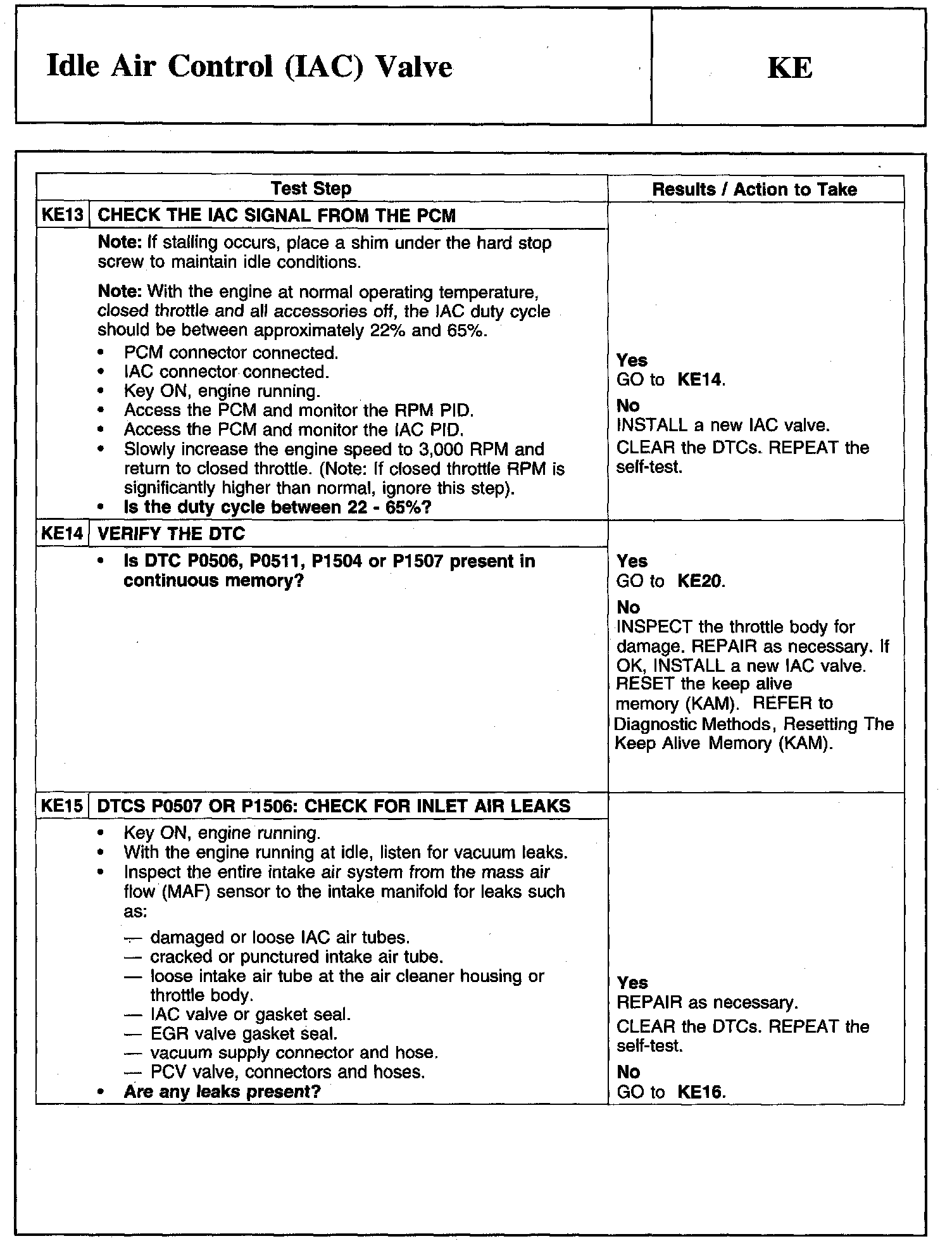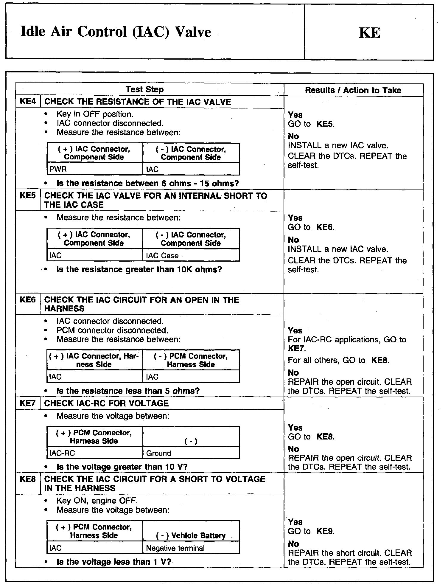 PINPOINT TEST KE: IDLE AIR CONTROL (IAC) VALVE