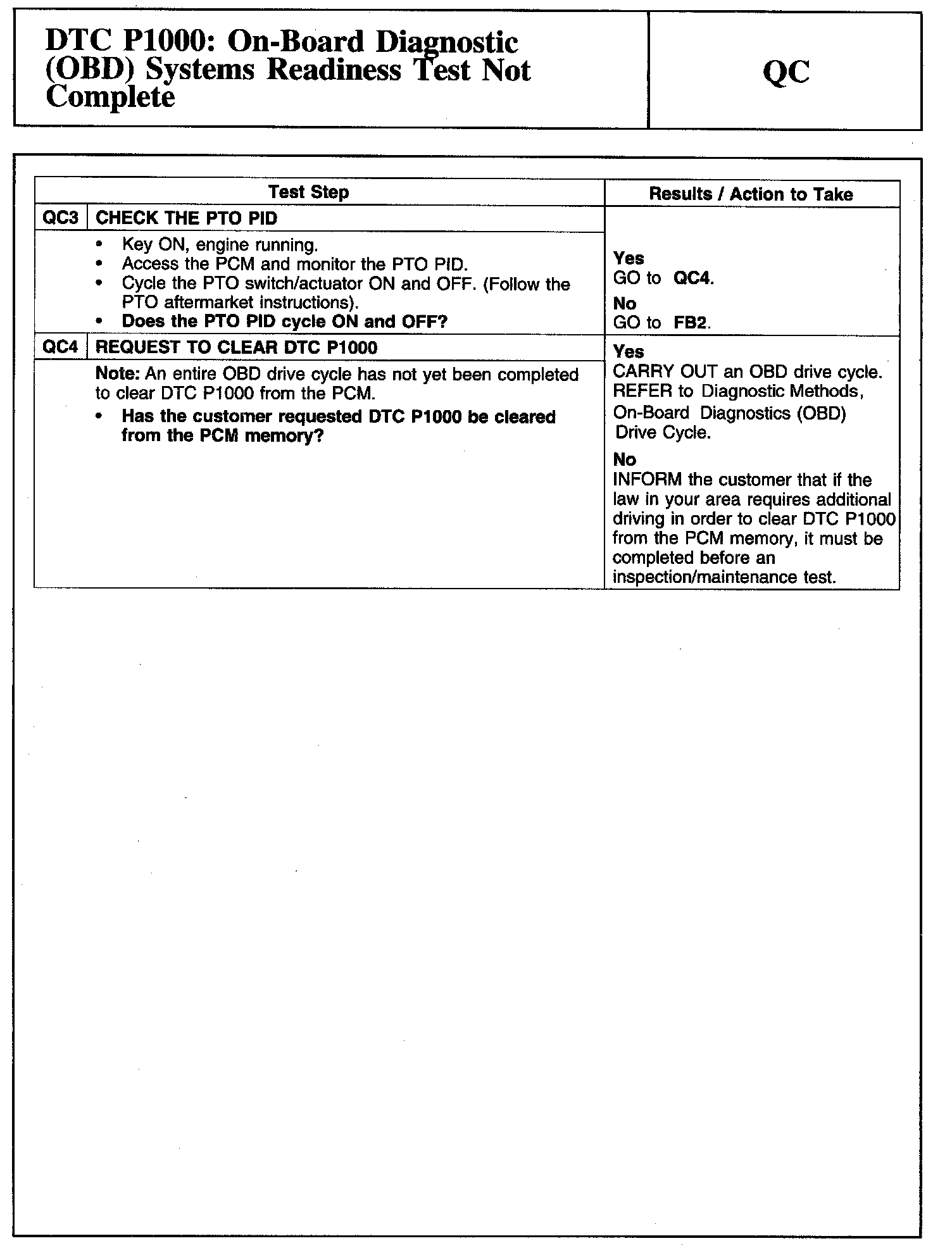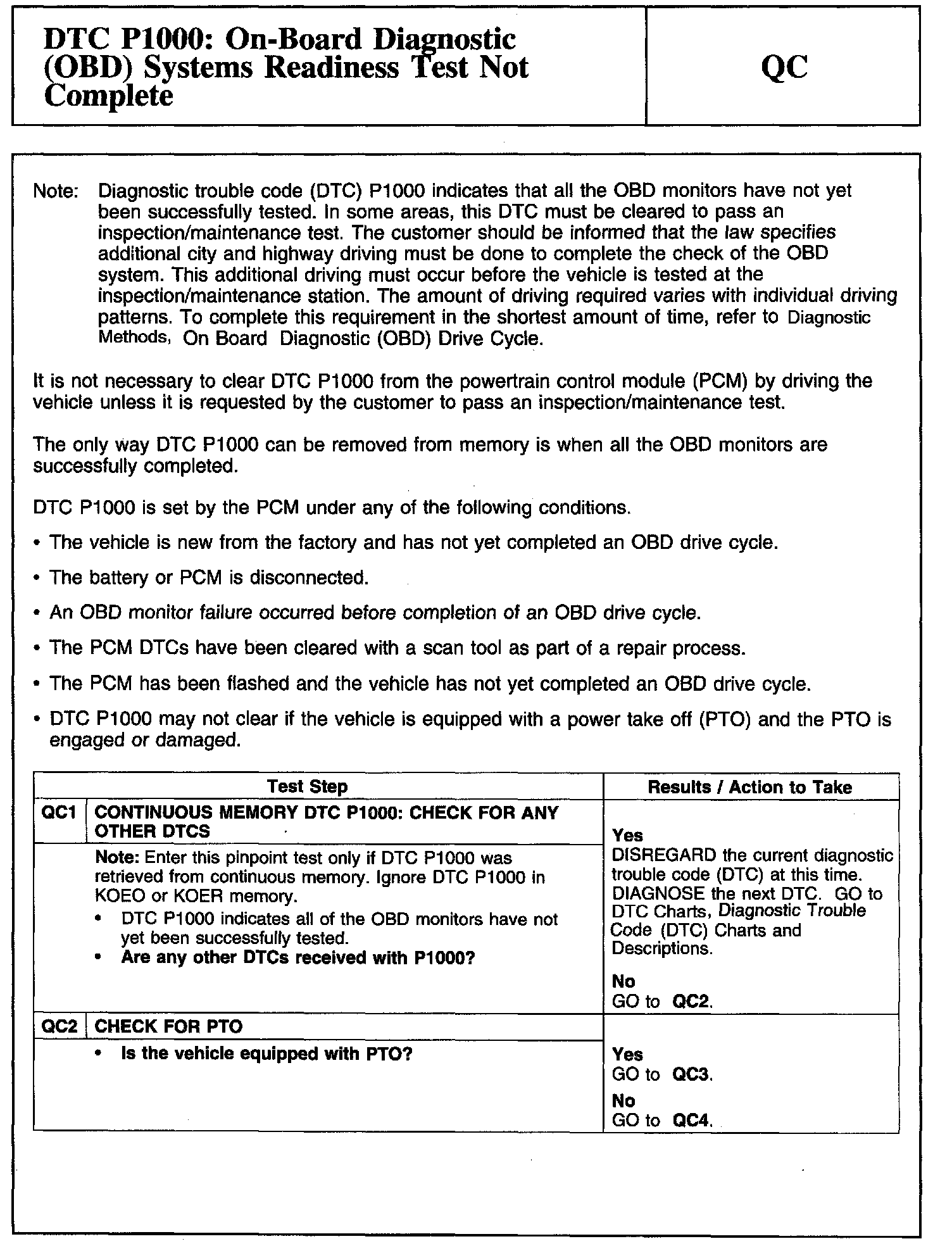 Tests QC: DTC P1000: On-Board Diagnostic (OBD) Systems Readiness Test Not Complete