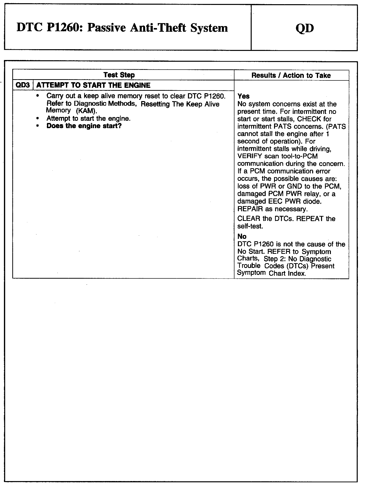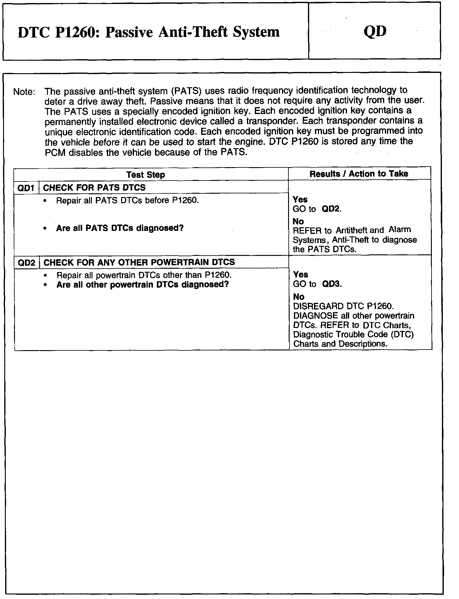 Tests QD: DTC P1260: Passive Anti-Theft System