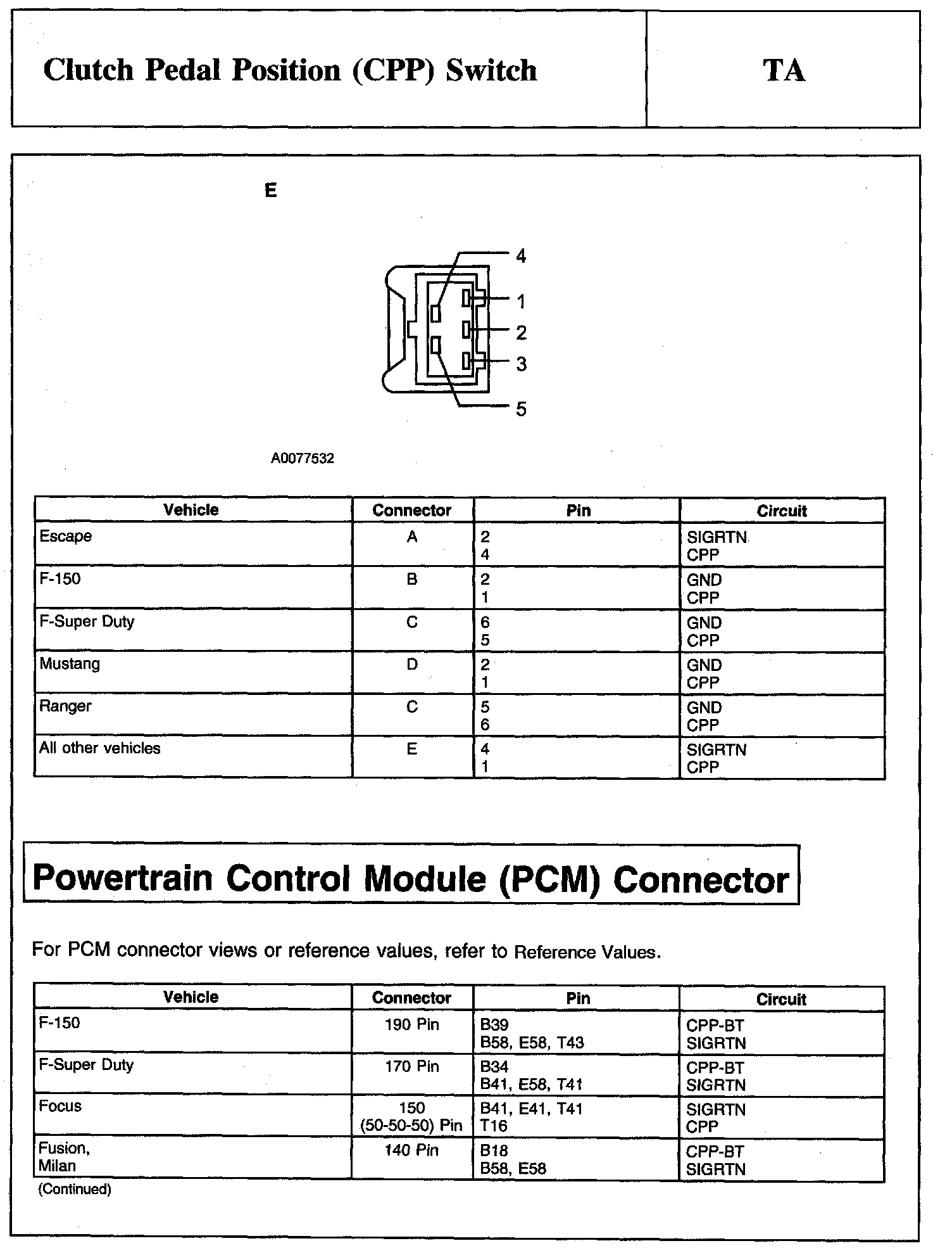 PINPOINT TEST TA: CLUTCH PEDAL POSITION (CPP) SWITCHClutch Pedal Position (CPP) Switch Connector: