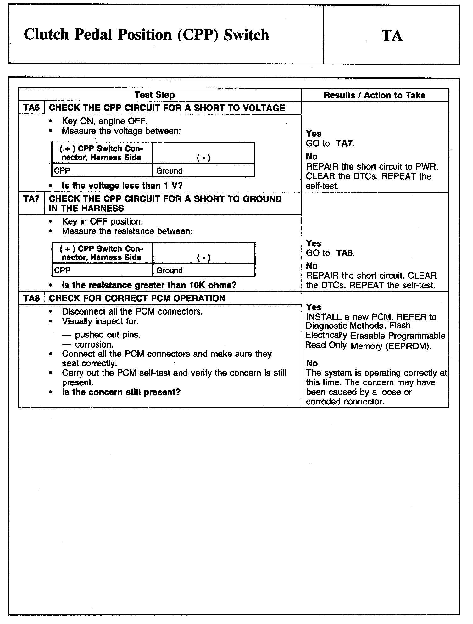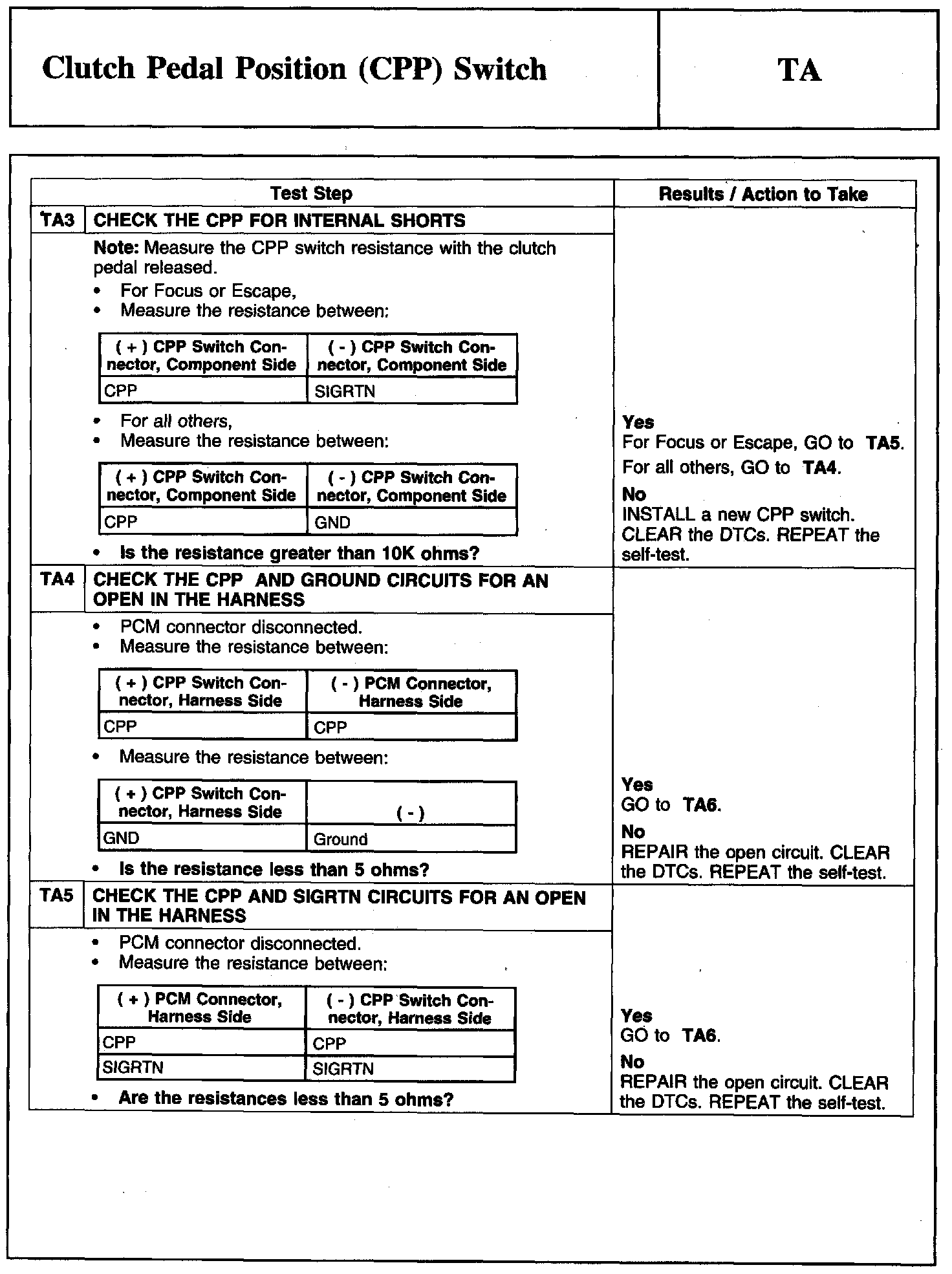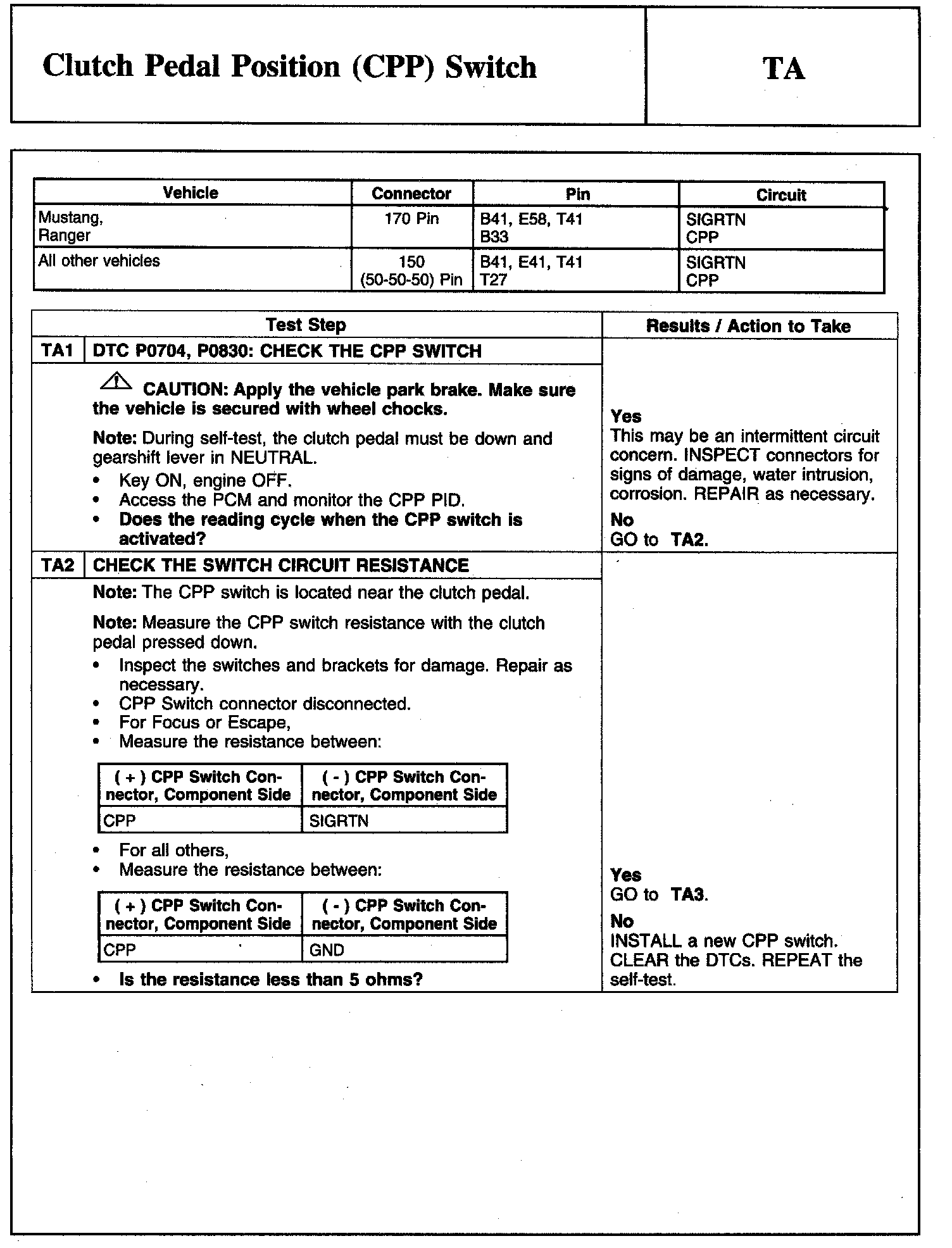 Tests TA: Clutch Pedal Position (CPP) Switch